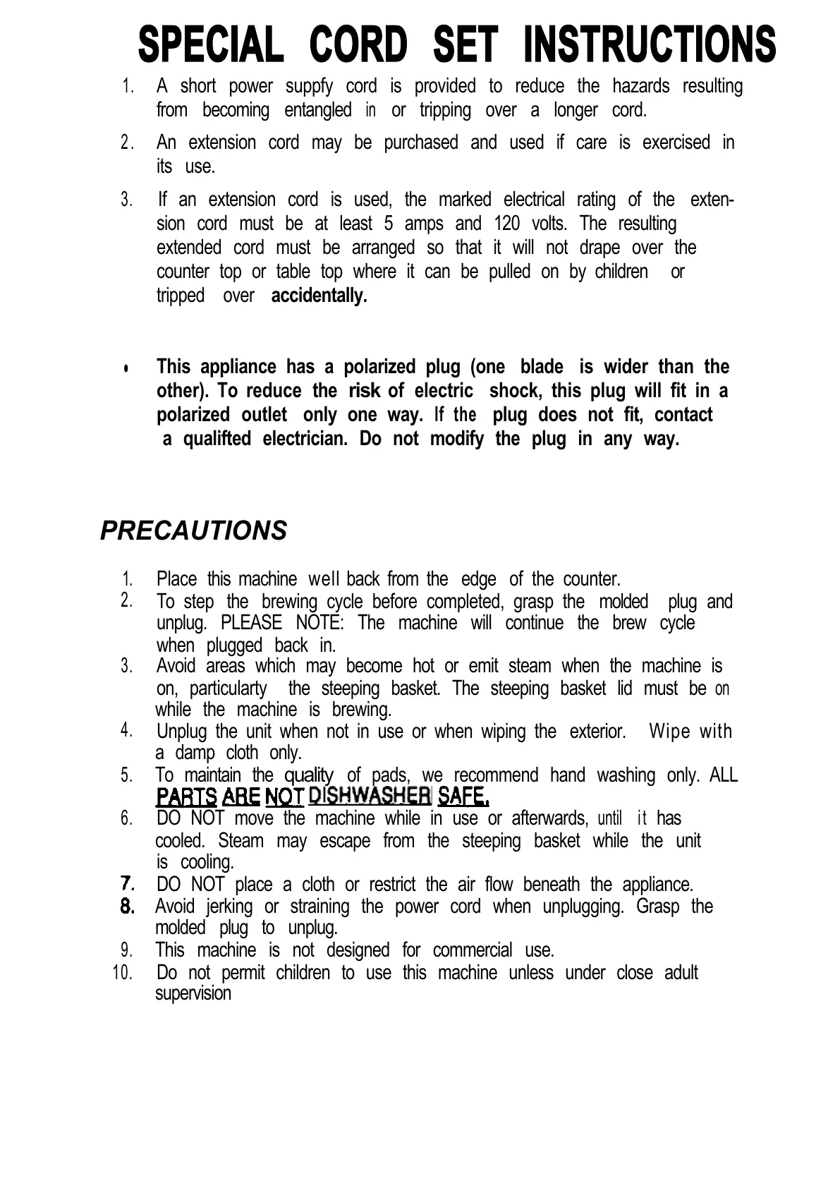 unplug. PLEASE NOTE: The machine will continue the brew cycle