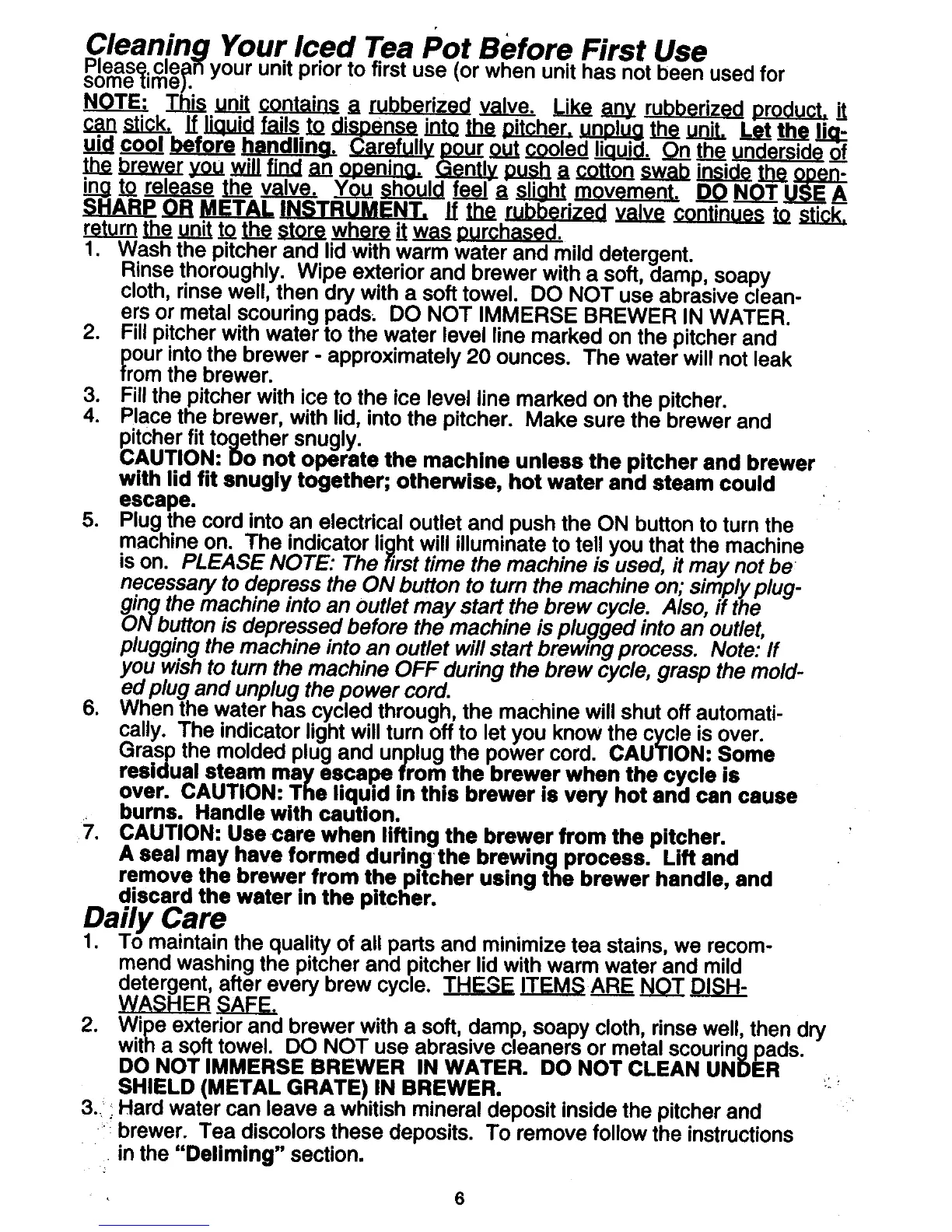 Mr. Coffee TM4 - Initial Cleaning Procedure; Daily Cleaning and Maintenance