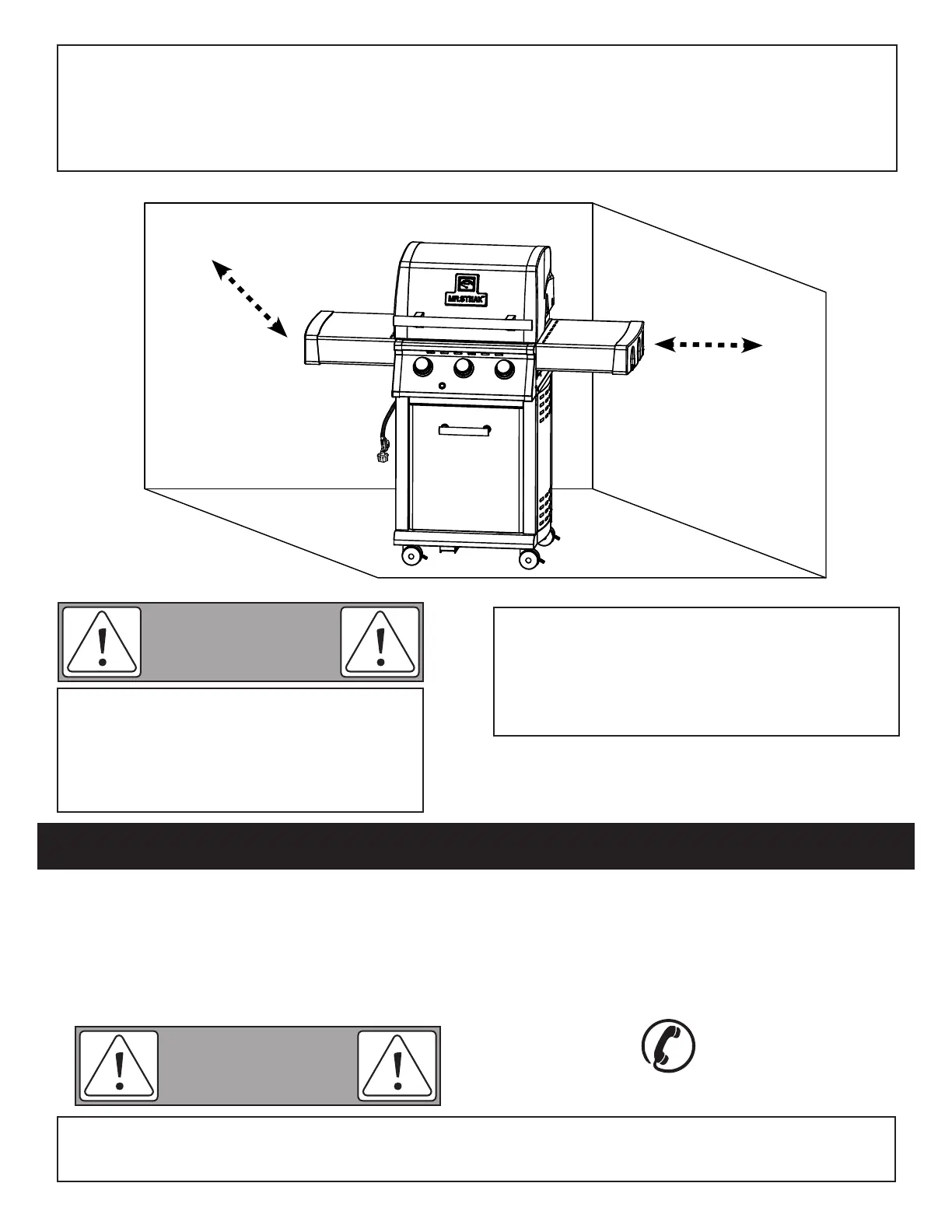 1. Les distances minimales de fonctionnement autour du barbecue qui doivent restées sans aucun encombrement de matières
