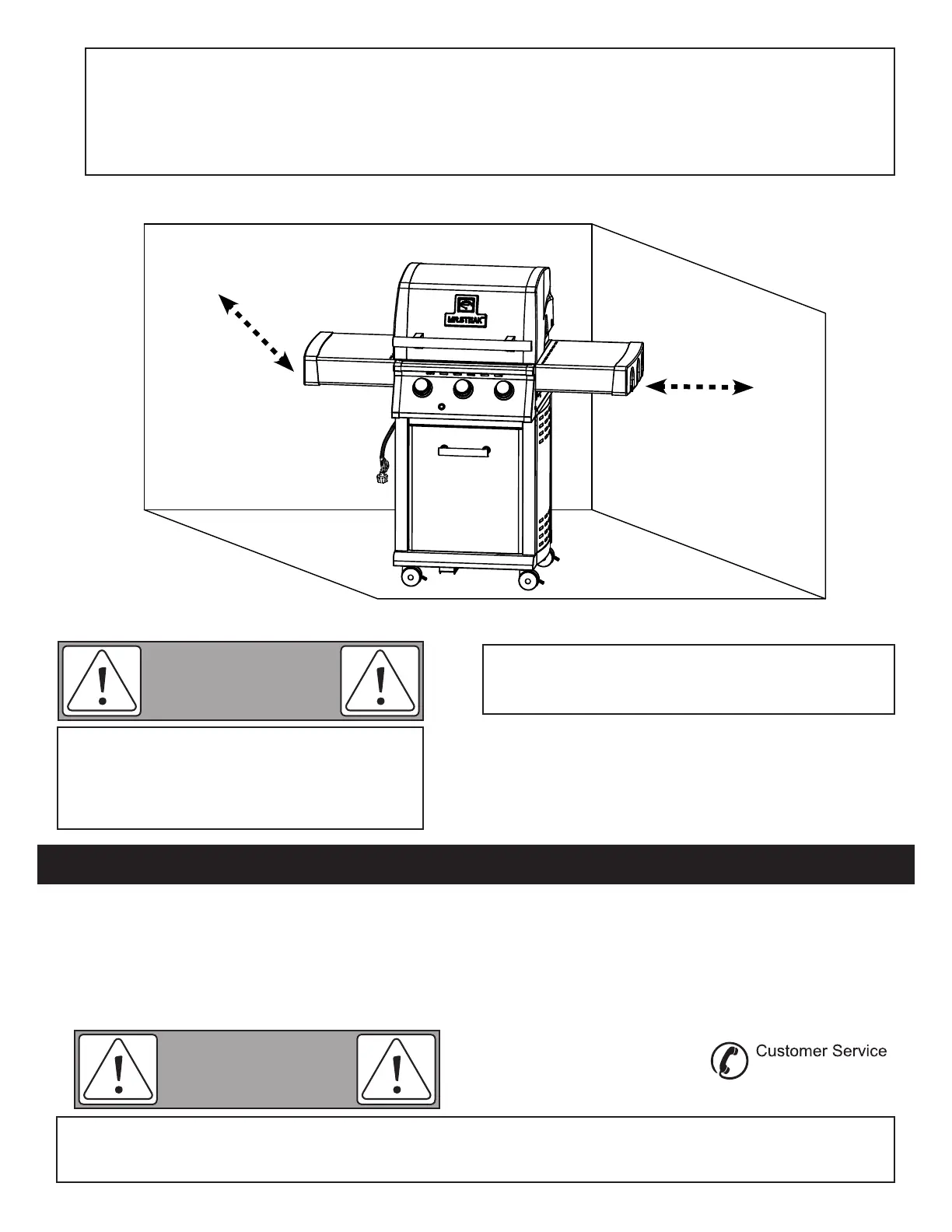 2. DO NOT use this grill in an area with combustible surfaces overhead.