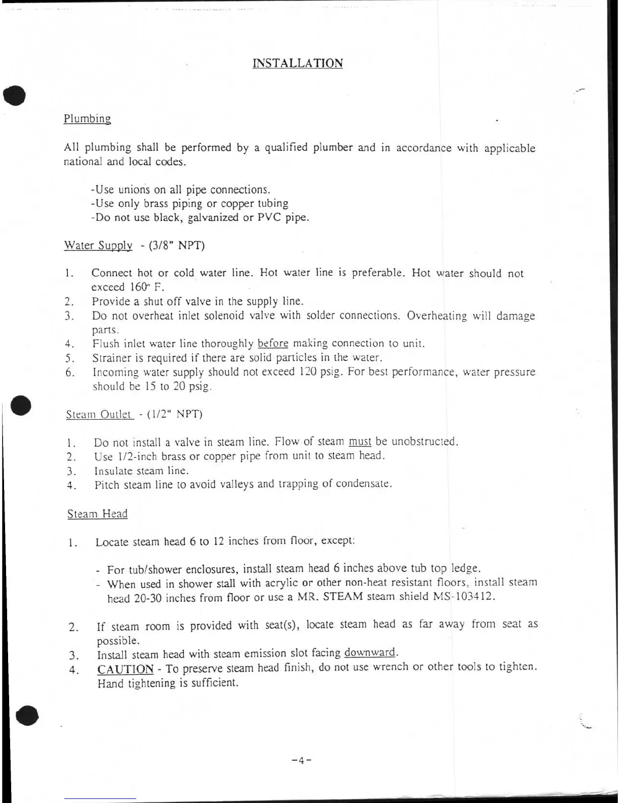 CAUTION - To preserve steam head finish, do not use wrench or other tools to tighten.
