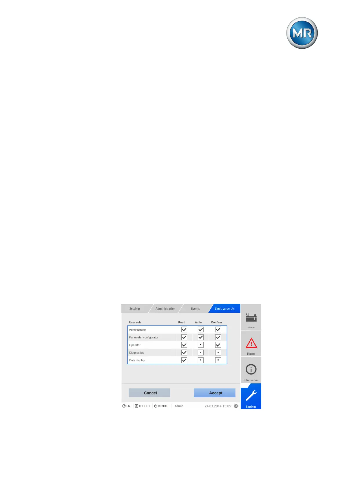 8.13.4 Setting access rights to parameters and events