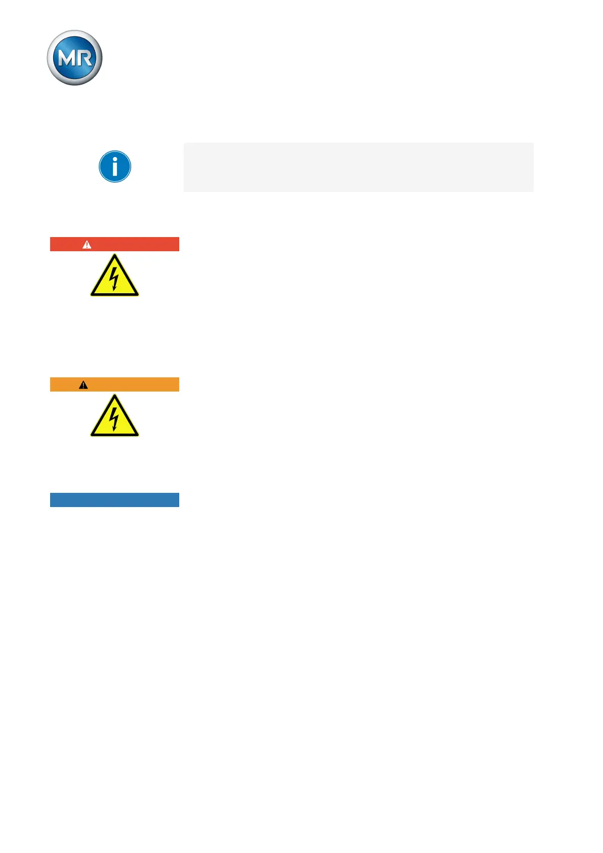 Risk of fatal injury due to electrical voltage. Always observe the following