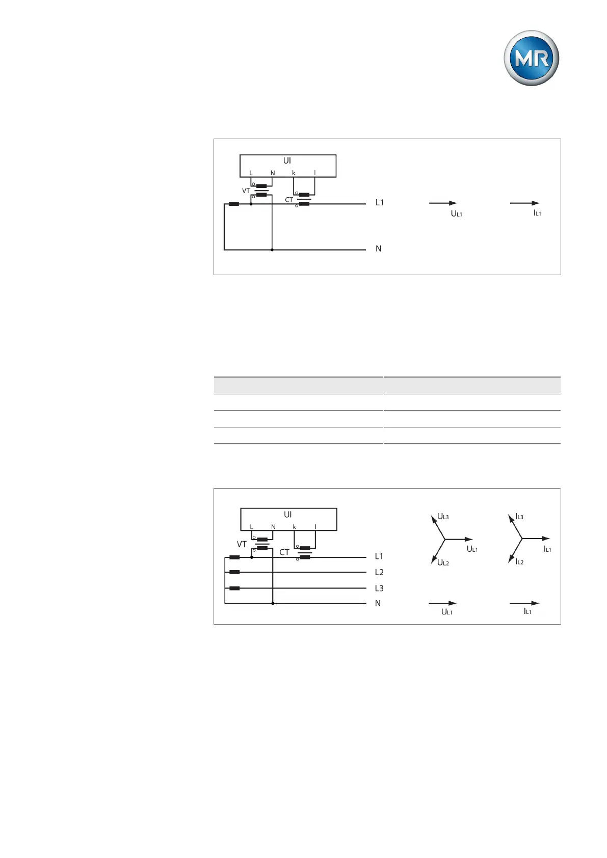 ▪ The voltage transformer VT is connected to the phase conductor and neu-