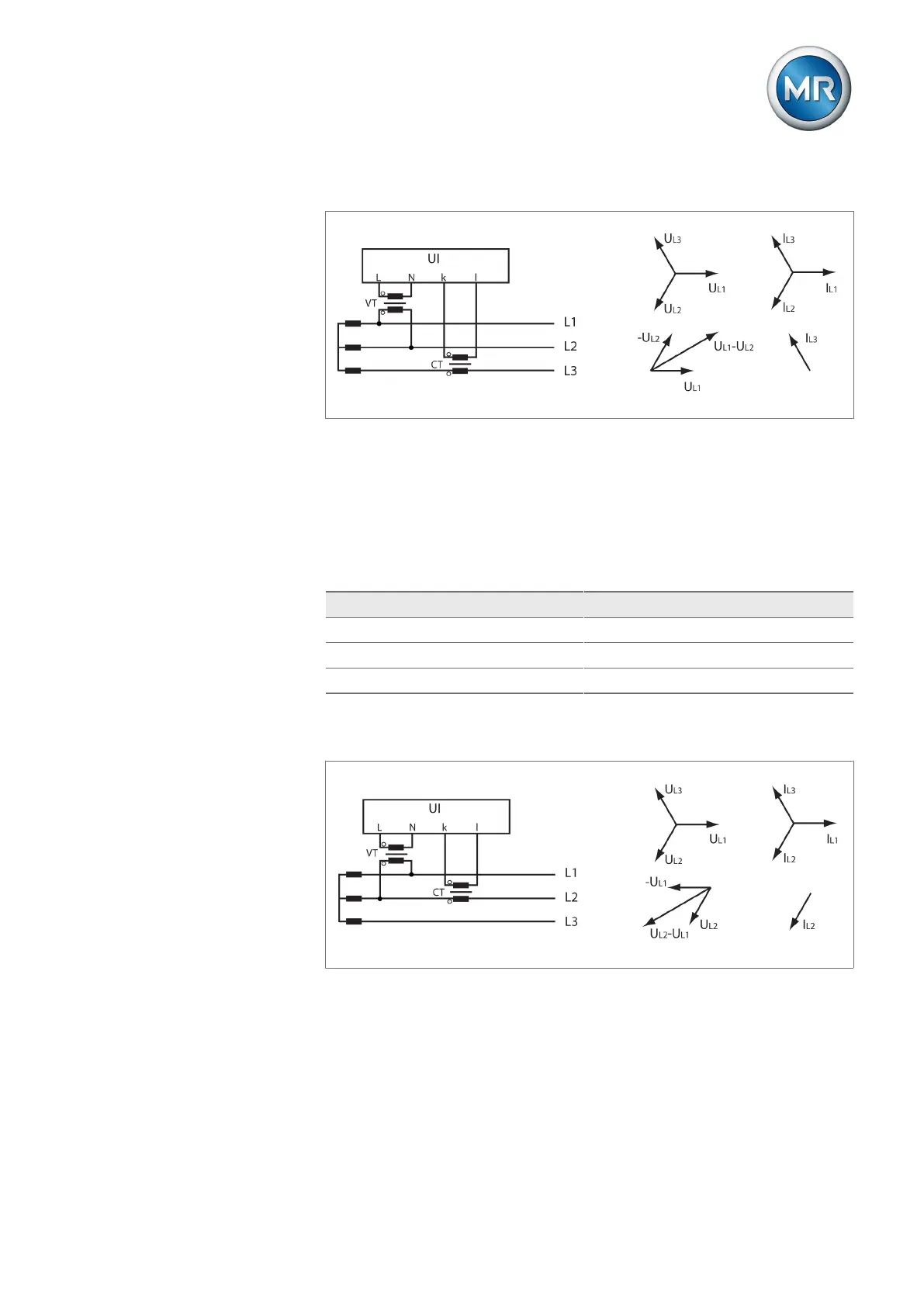 ▪ The voltage transformer VT is connected to the phase conductors L1 and