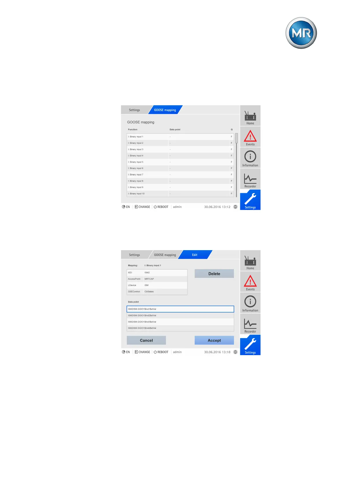 To configure the device as a GOOSE subscriber, proceed as follows: