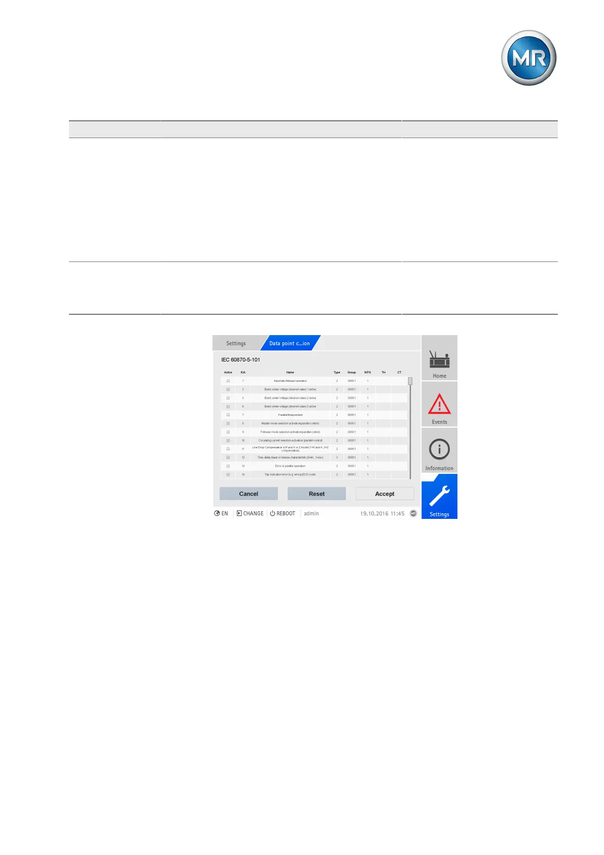 Table35: Configuring IEC 60870-5-101 data points