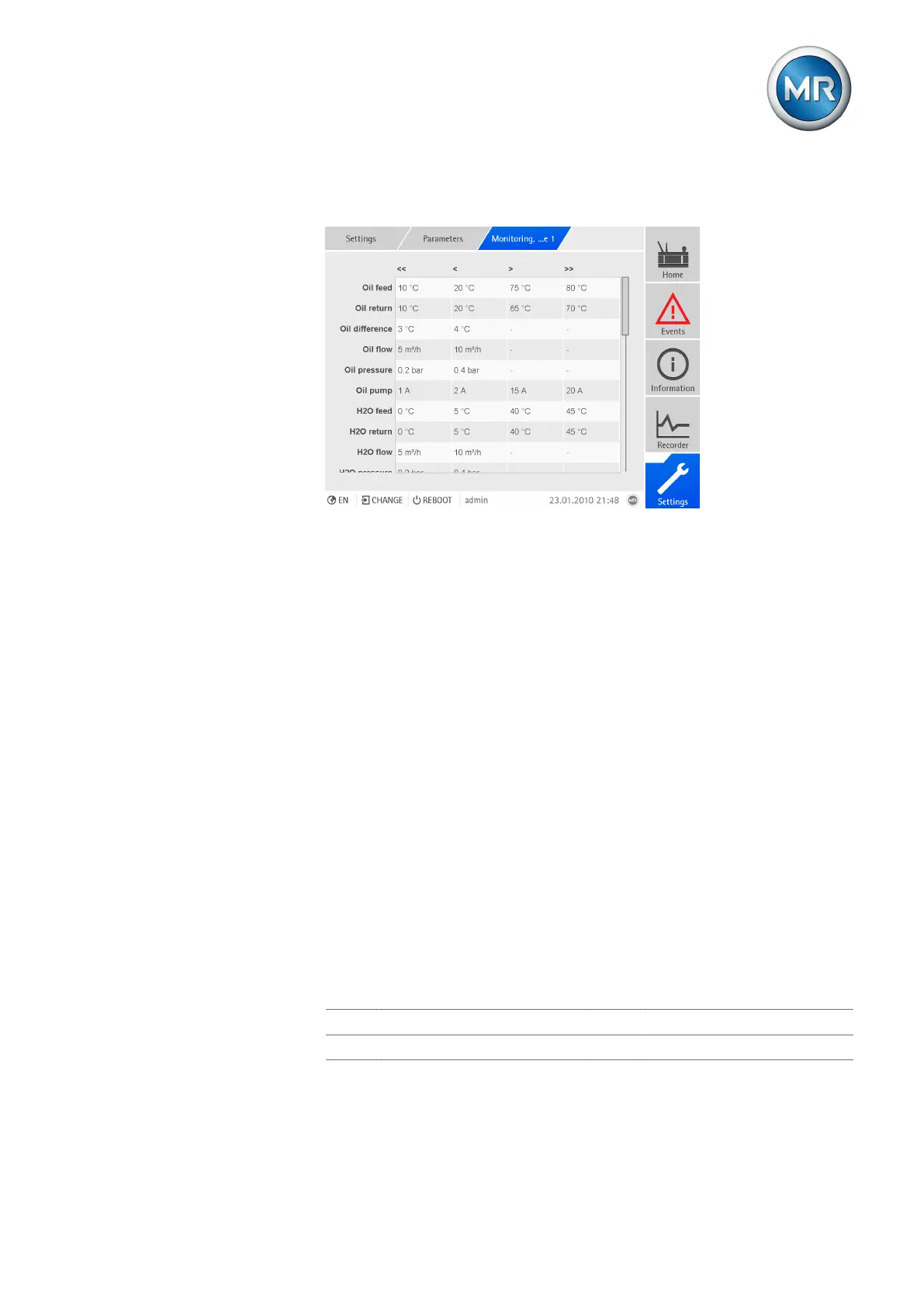 temperature of the oil circuit. You can set two upper and two lower limit val-