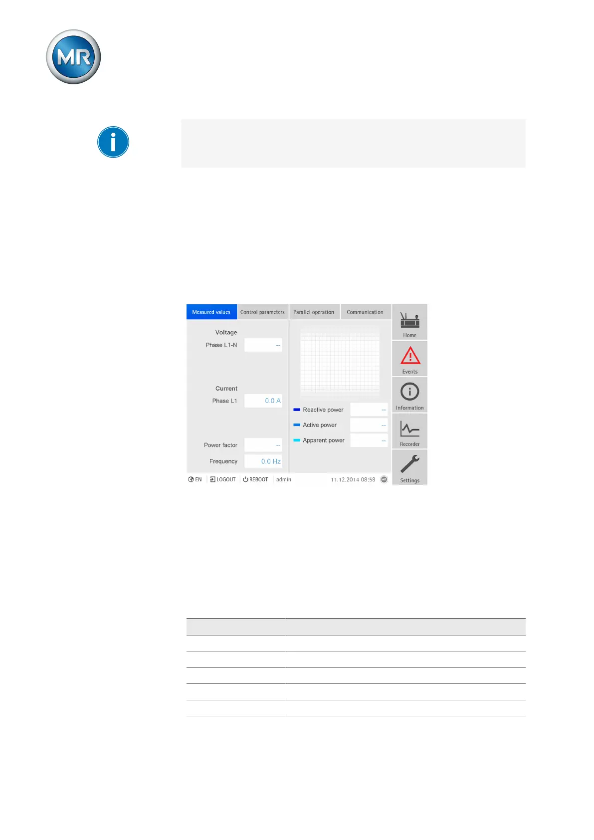 The following measured values are displayed:
