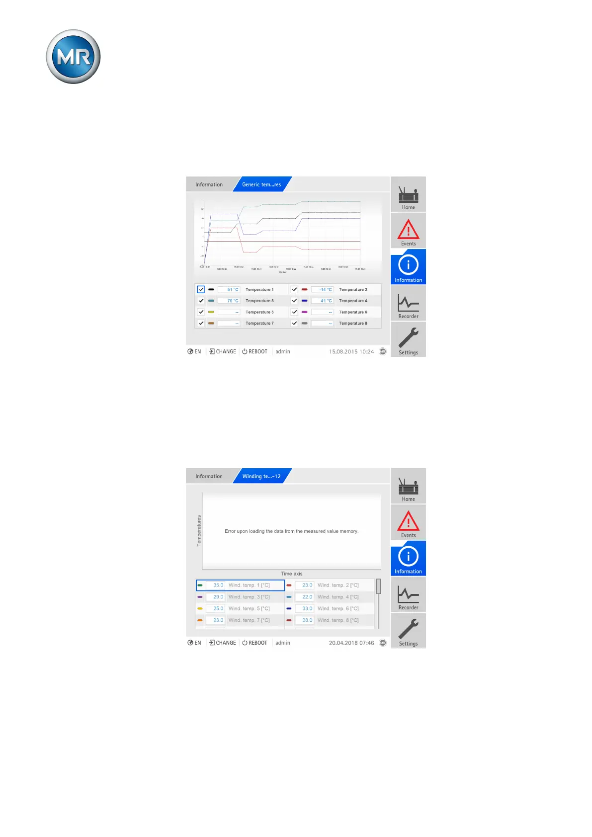 ► Go to Information > Active part > Winding temperature 1-12/13-24.