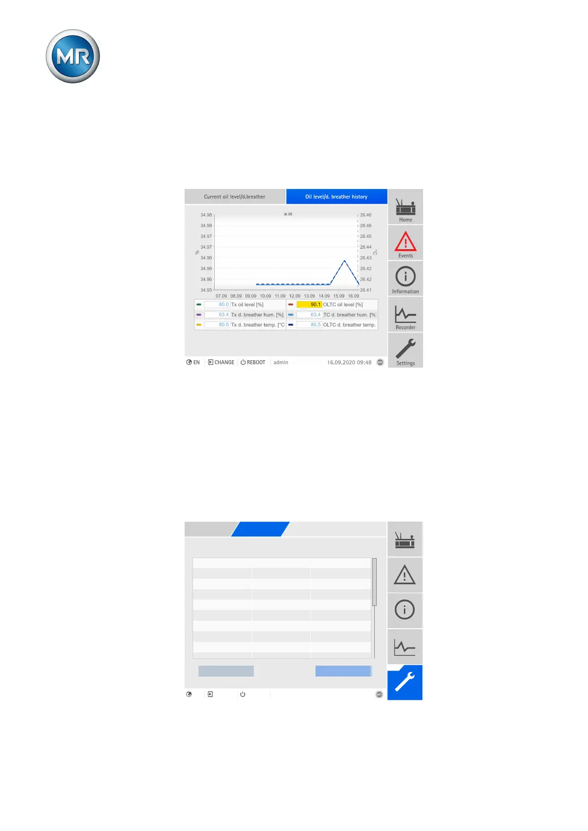 Figure181: Measured value trend of the oil level and the dehydrating breather measured values