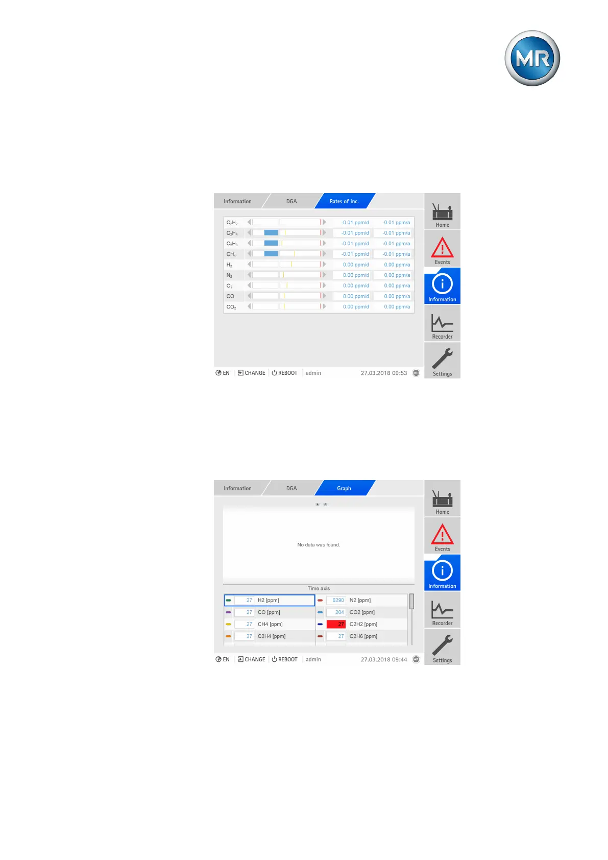increase (ppm/d) and the set limit values (yellow, red). The set evaluation in-