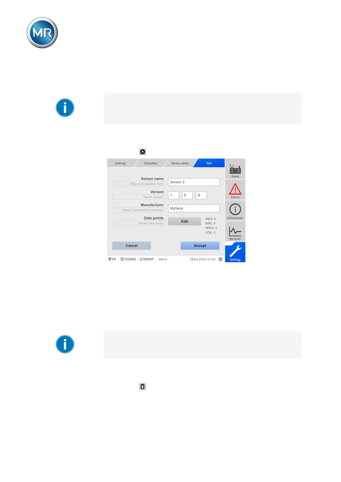 1. Go to Settings > Sensor bus > Sensor editor.
