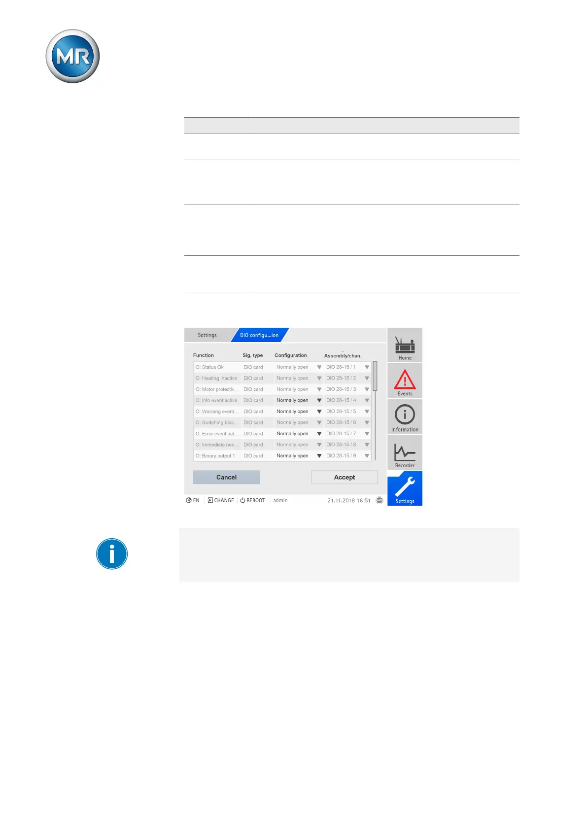 Table90: Configuration of the digital inputs and outputs