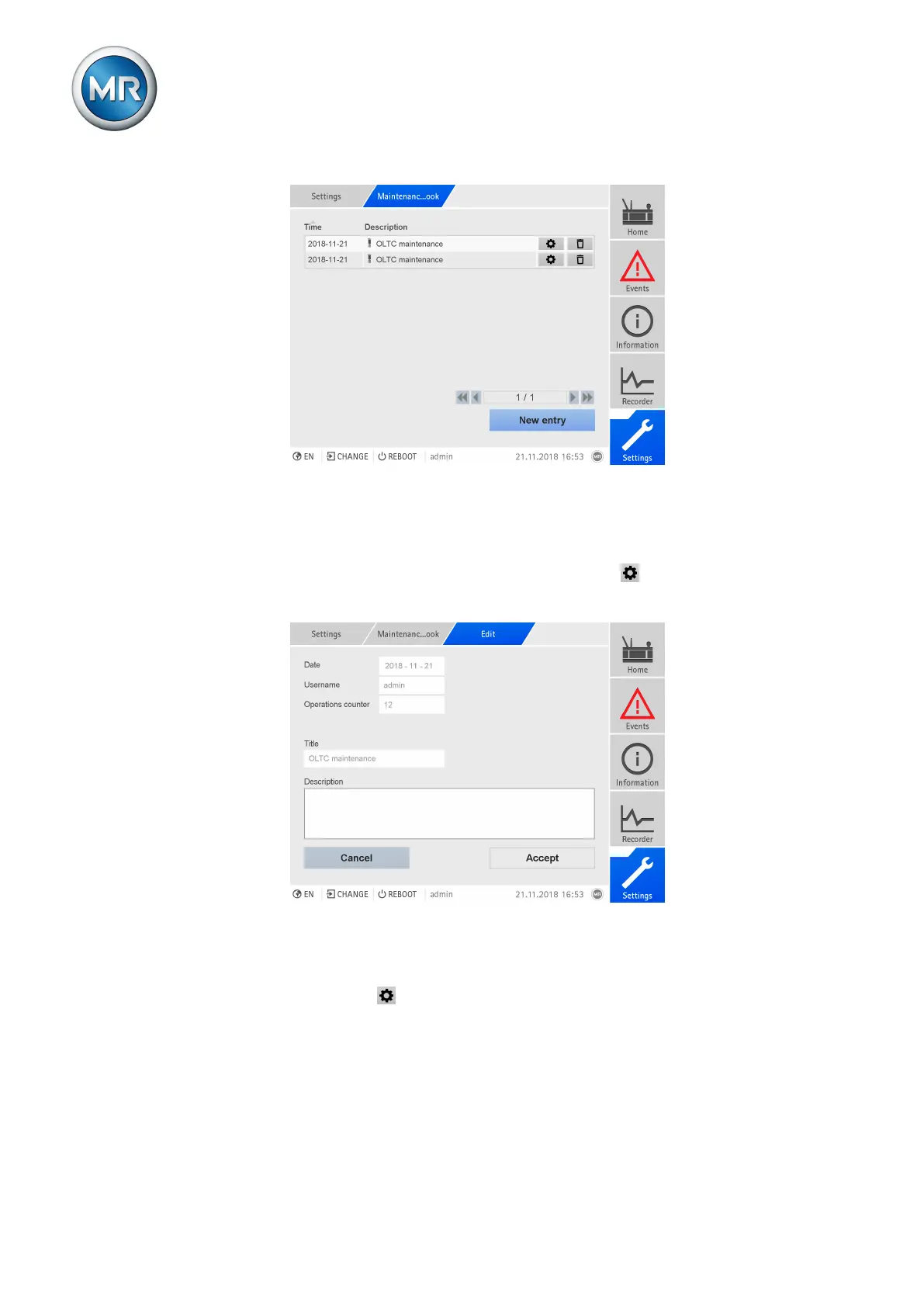Figure231: Editing an entry in the maintenance logbook
