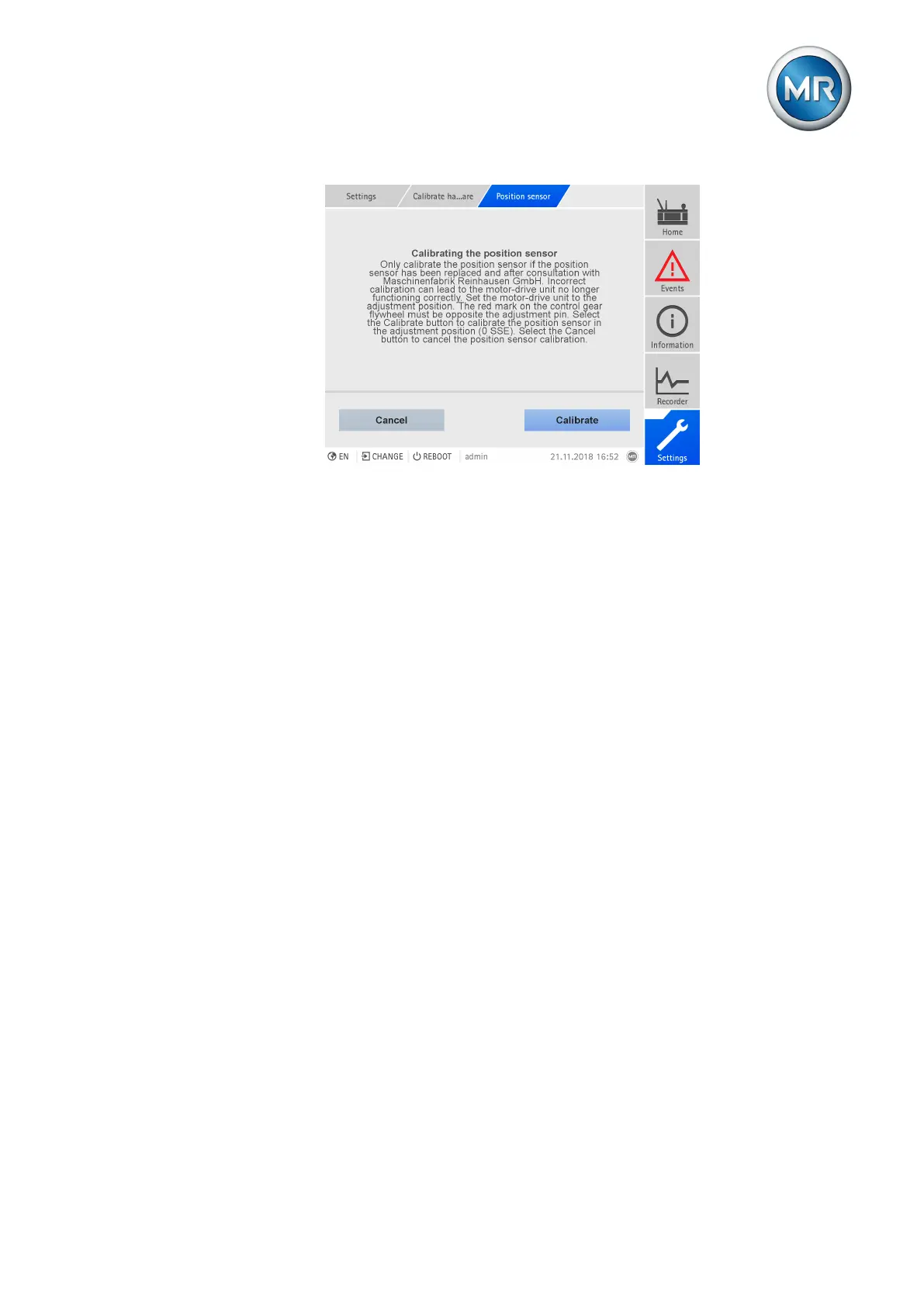 ð The position sensor will be calibrated.