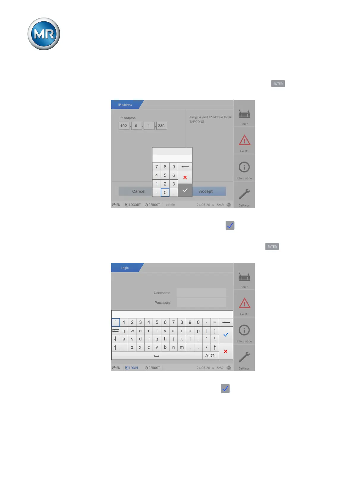 2. Enter the desired value and confirm with .
