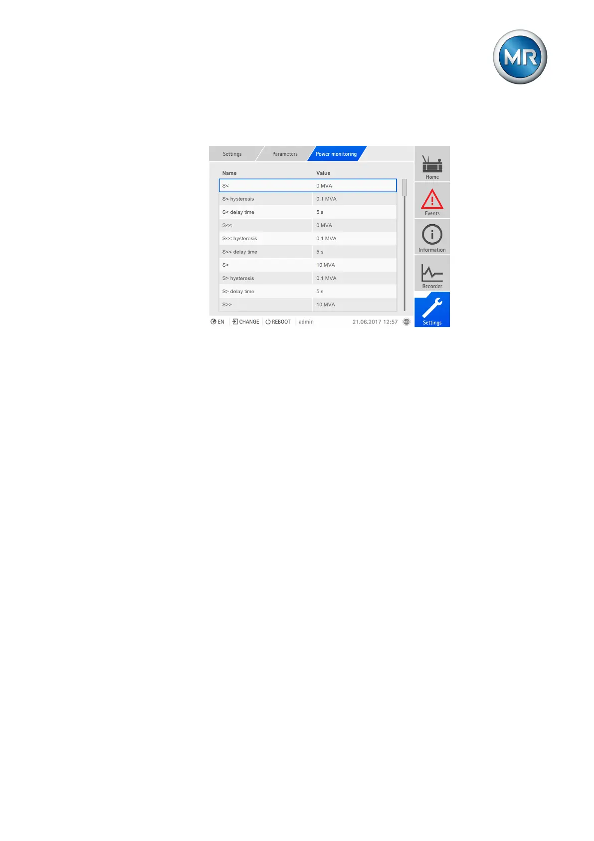 1. Go to Settings > Parameters > Power monitoring.