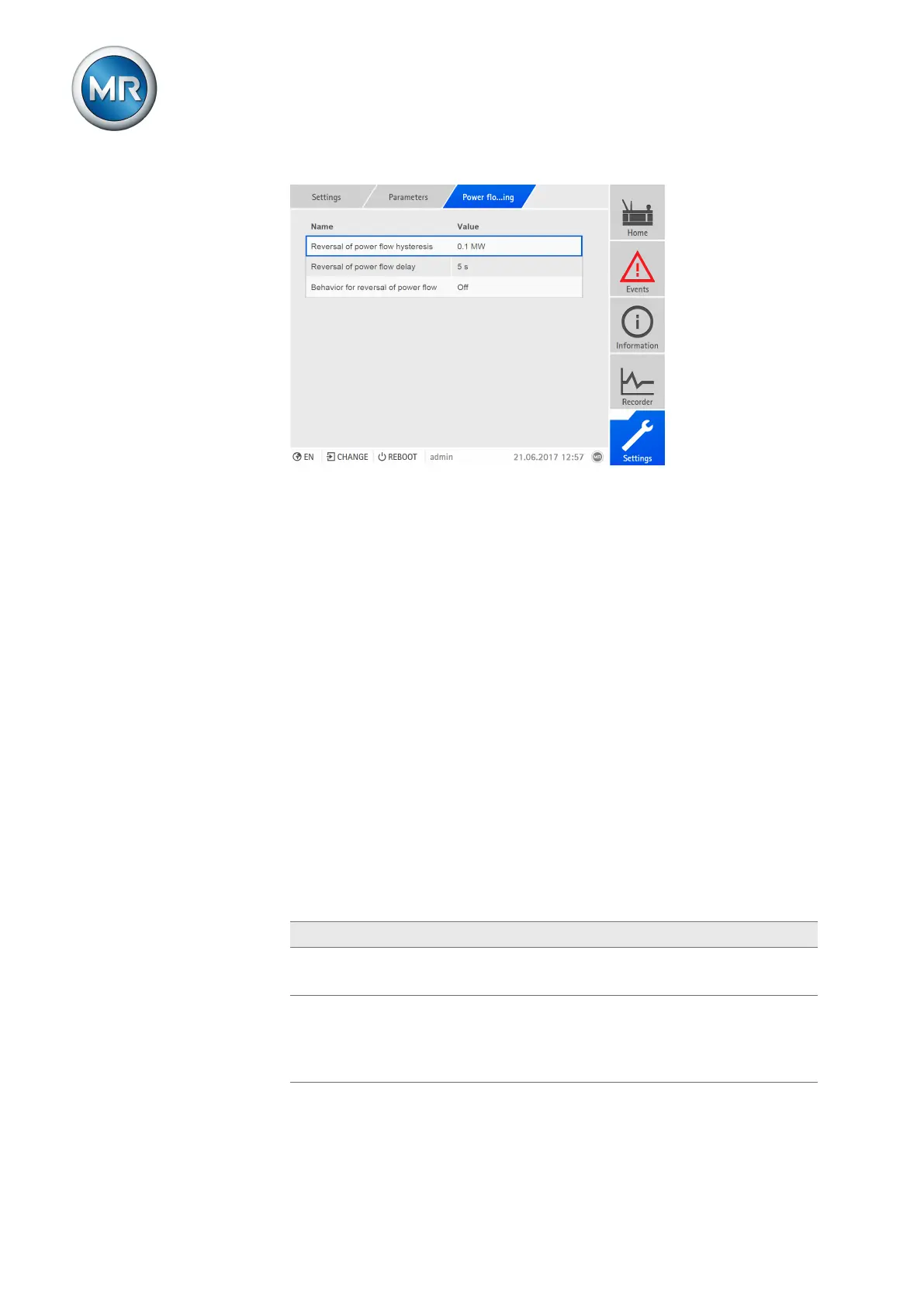 Event only ▪ The Reversal of power flow event is issued.