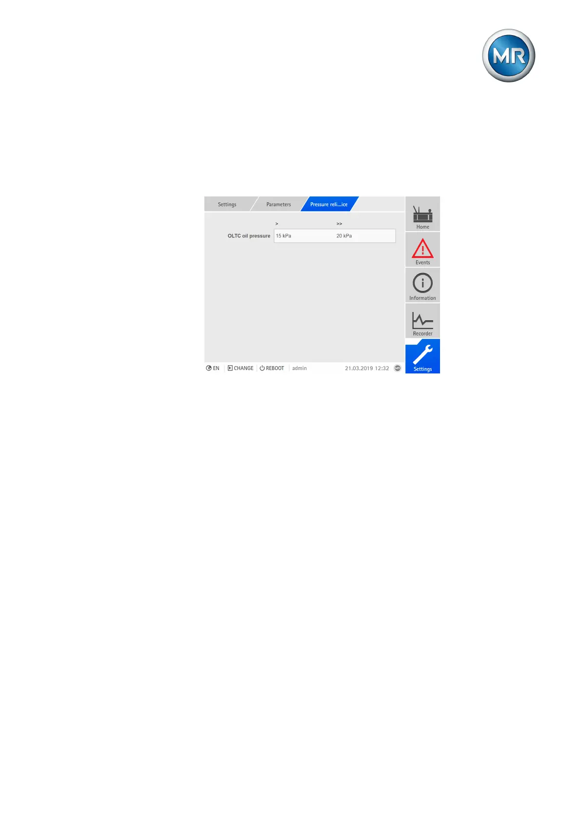 1. Go to Settings > Parameters > (On-load tap-changer) > Pressure re-