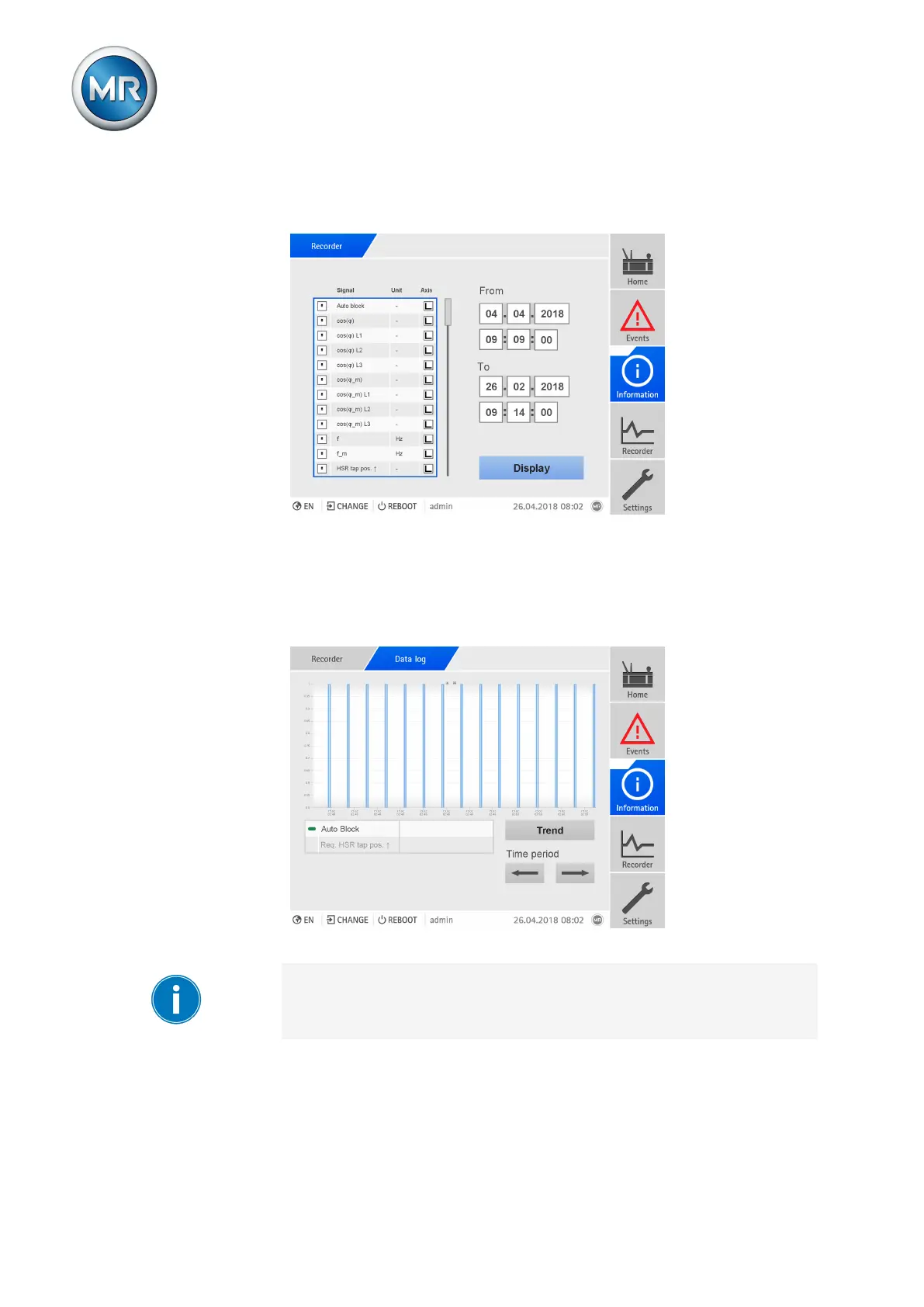 To display the measured value recorder, proceed as follows: