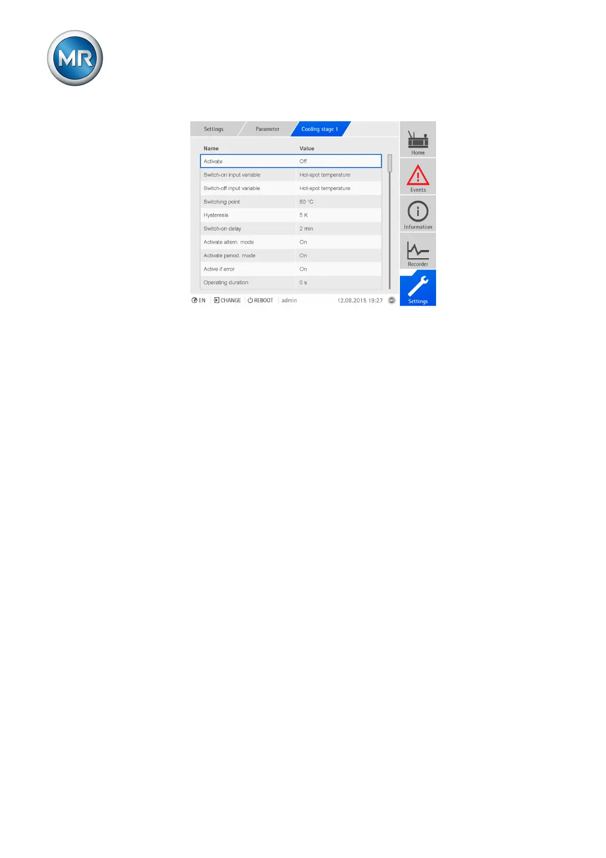 1. Go to Settings > Parameters > Cooling stage X > Activate.