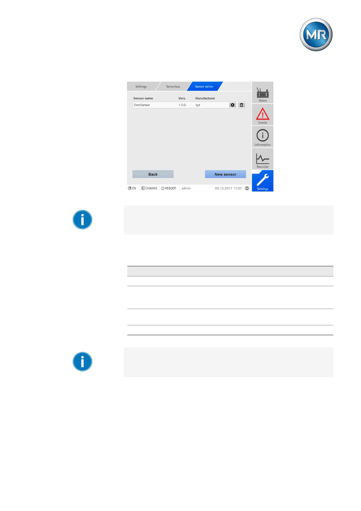 1. Go to Settings > Sensor bus > Sensor editor.