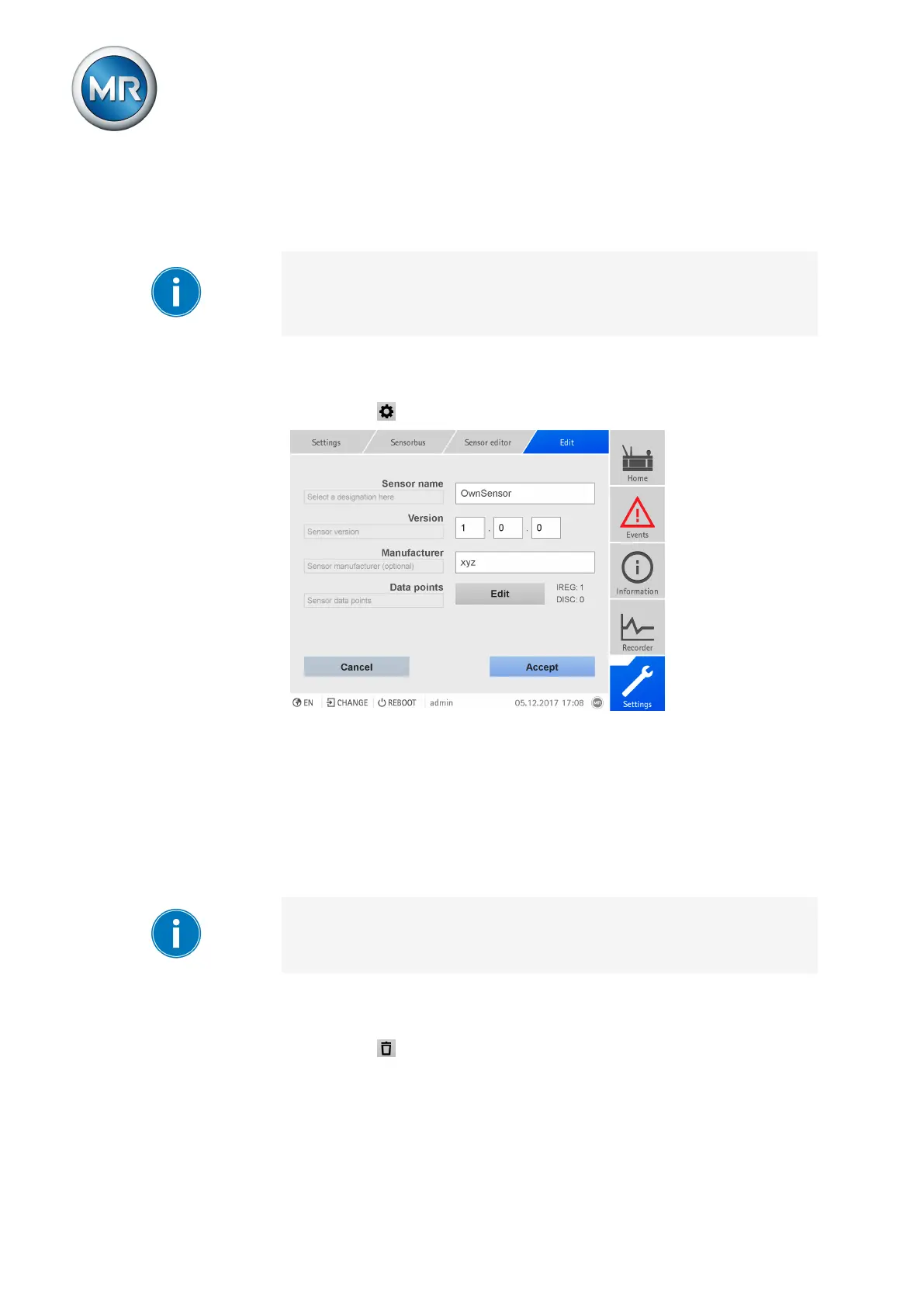 3. Enter the sensor name, sensor version and sensor manufacturer (op-