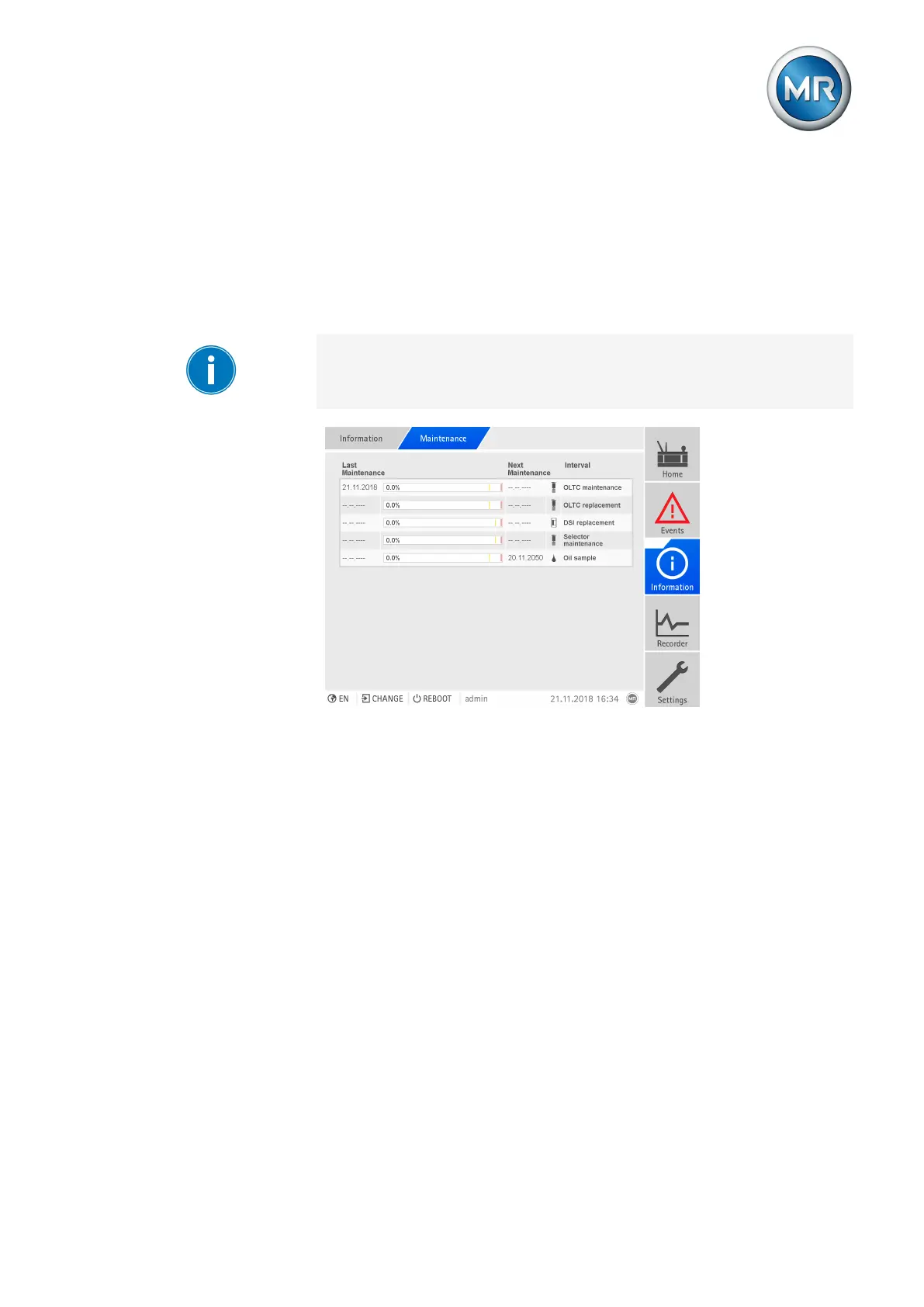 event messages. For the maintenance intervals of the on-load tap-changer,