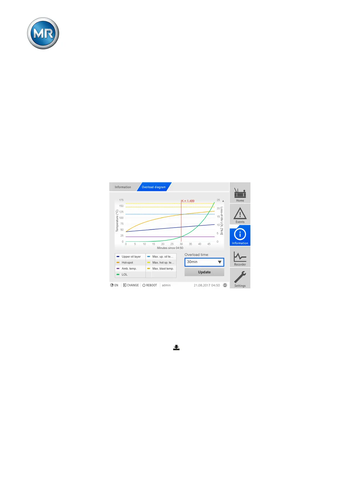 the forecast progression of the temperatures (hot-spot, top-oil) as well as the
