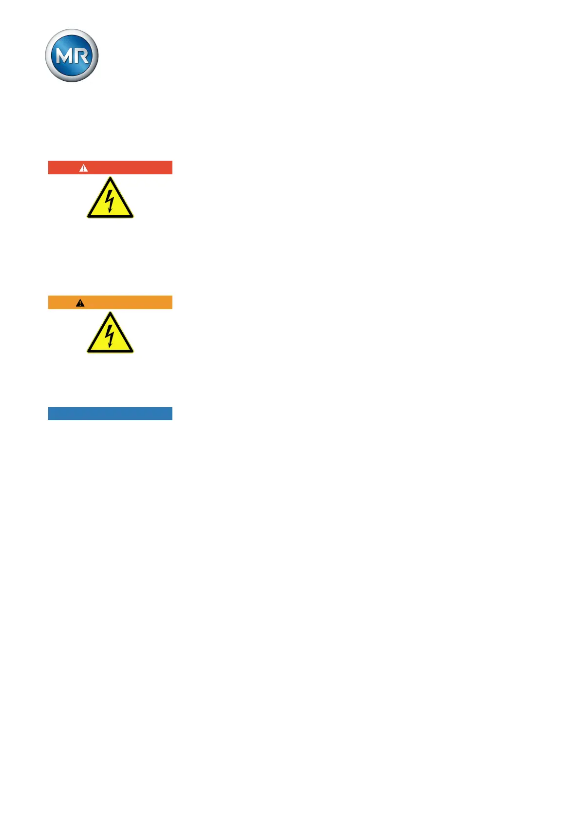 Risk of fatal injury due to electrical voltage. Always observe the following