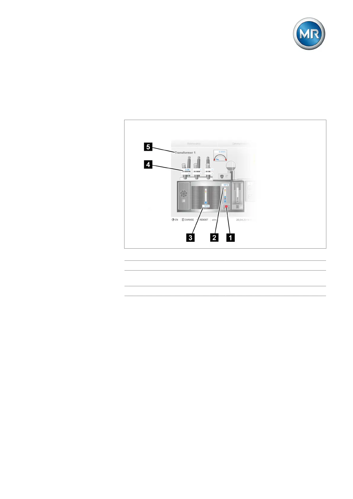 The most important measured values of the transformer are displayed on the