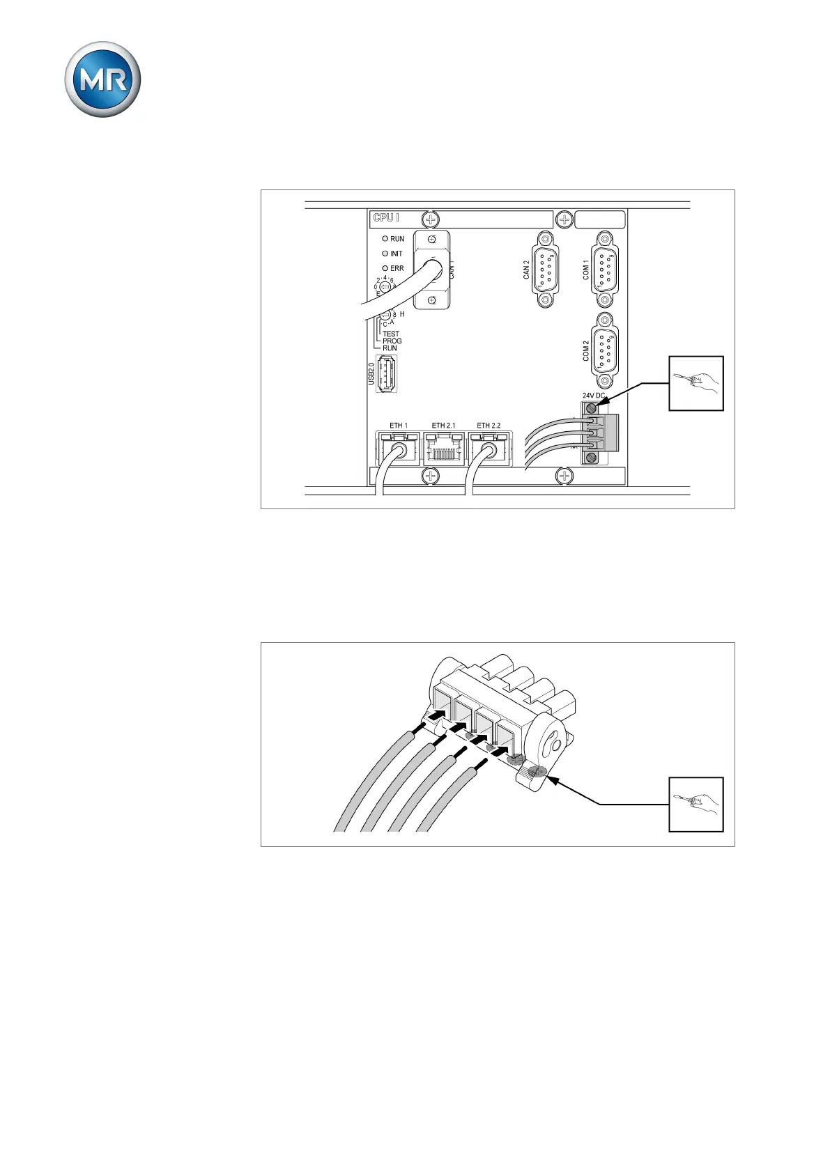 2. Insert and fasten the plug into the respective "24 V DC" slot.