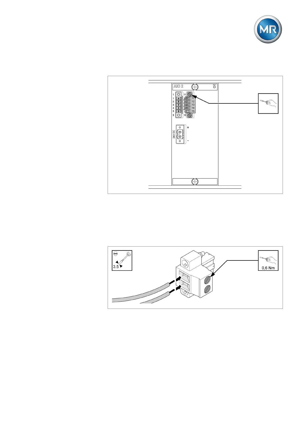 1. Guide the leads into the plug terminal and fasten them using a screw-