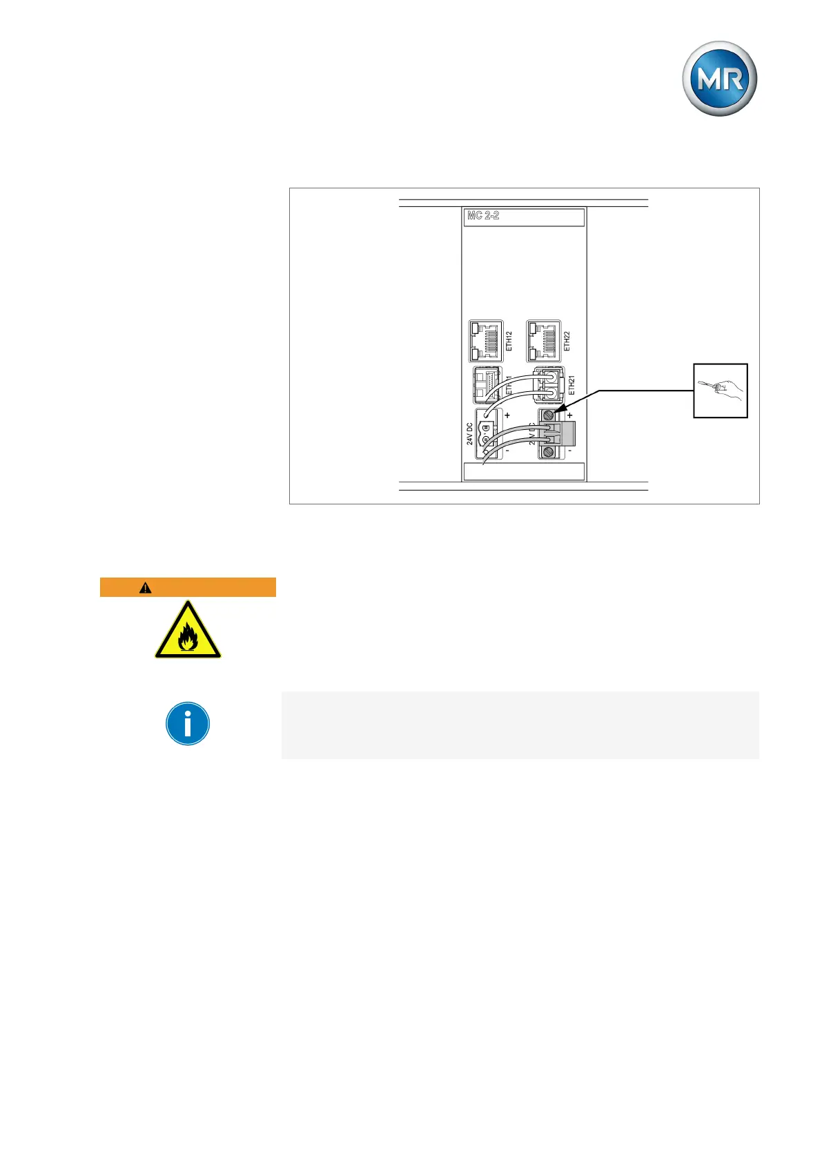 There is a fire hazard if the cables for the 24V supply to the assemblies are
