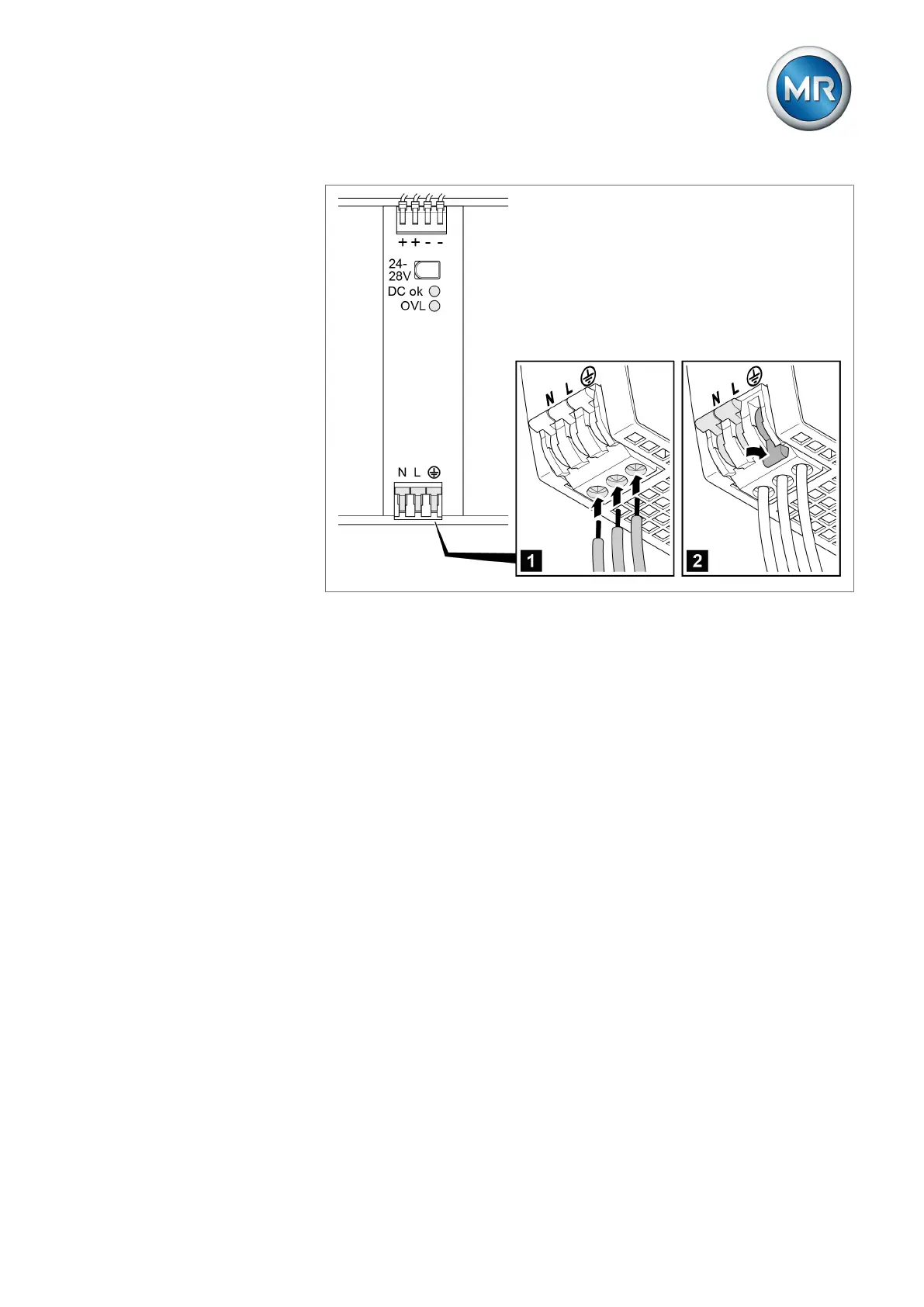 Figure77: Inserting the neutral conductor, phase conductor and protective conductor