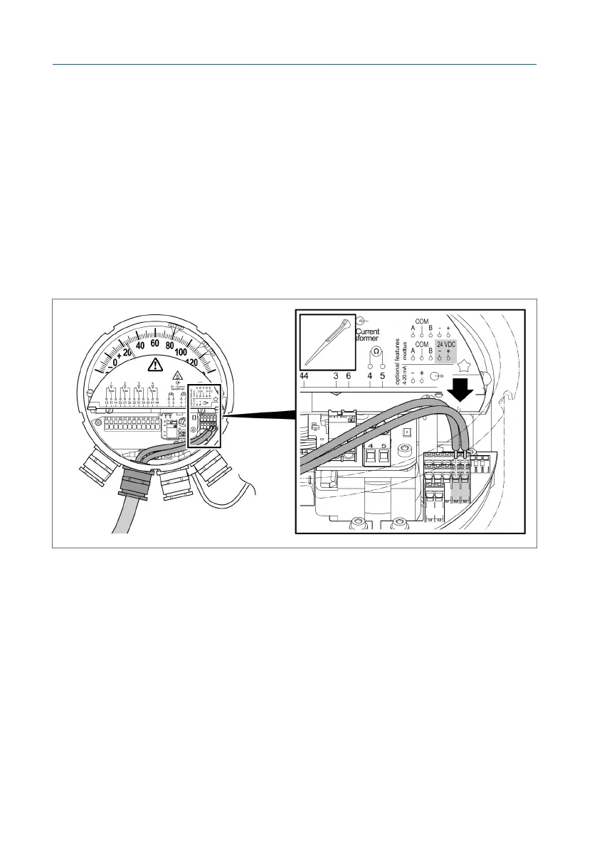 2. Connect the wires to the terminals "24VDC(+/-)". Do so by pushing the