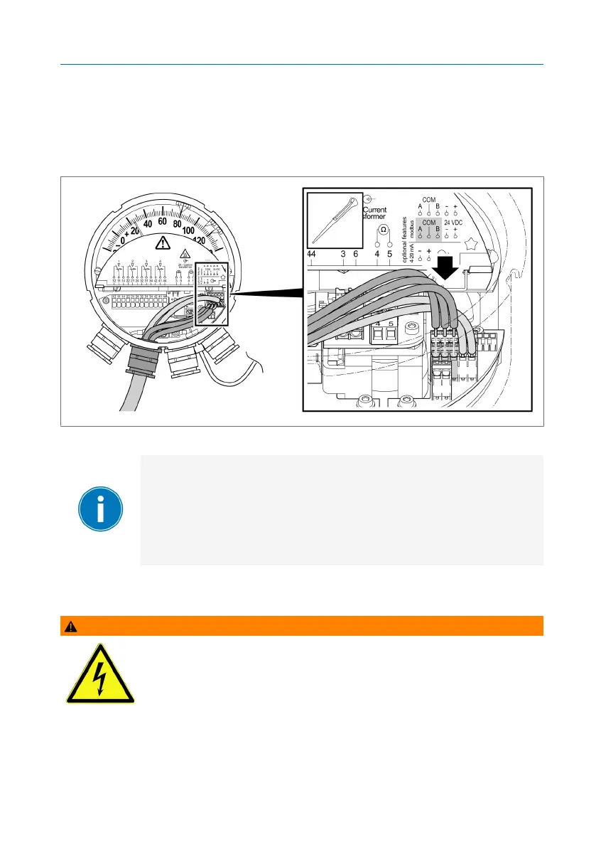 ► Use the same method to attach the wires for the Modbus RTU to the ter-