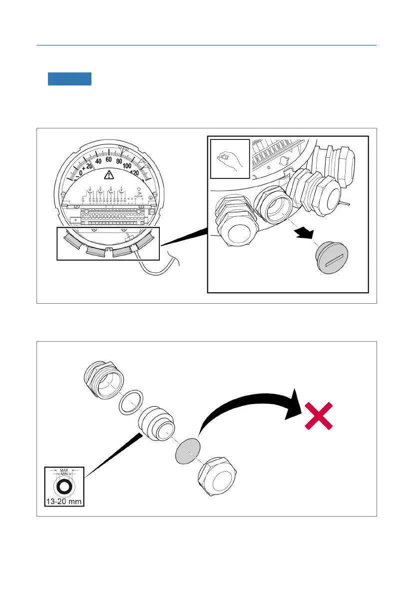 1. NOTICE! If the cable gland is not used, equip it with a sealing plug or re-