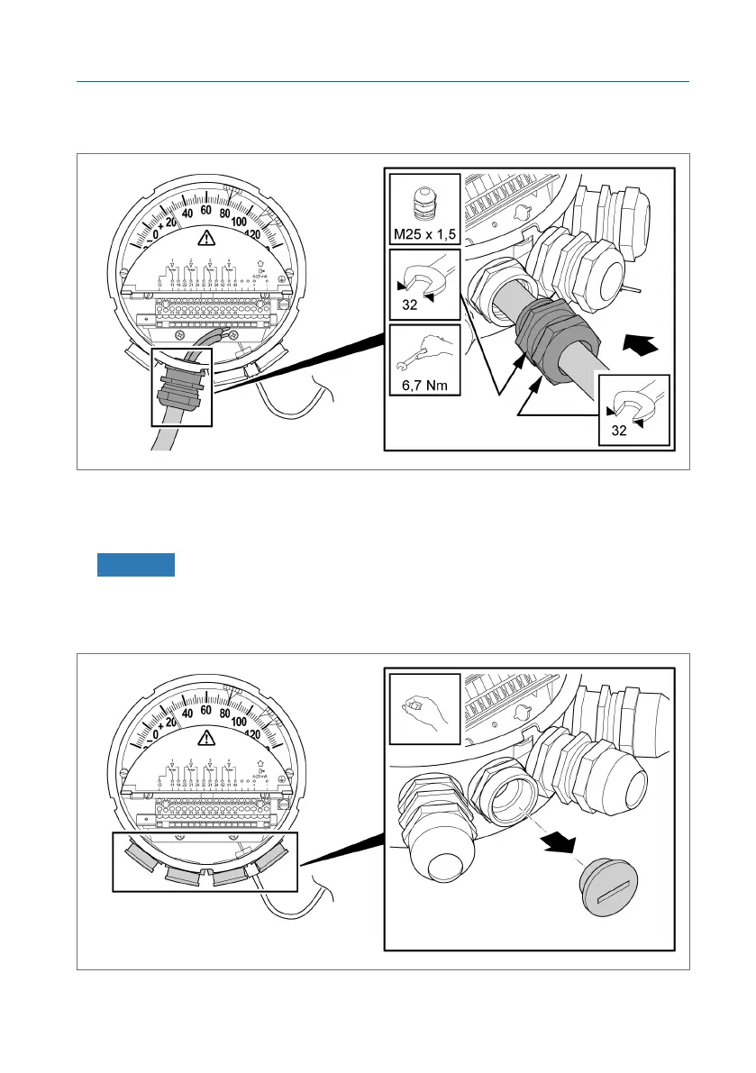 1. NOTICE! If the cable gland is not used, equip it with a sealing plug or re-