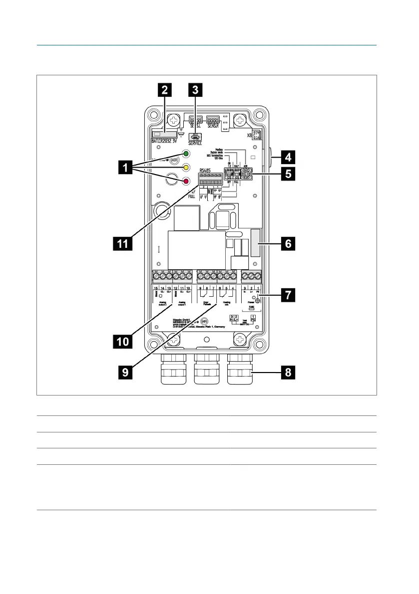 1 LEDs for status display 2 RTC buffer battery (type CR2032)