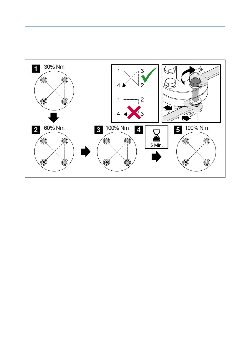 6. Tighten the screws crosswise again with approx. 100% of the torque.