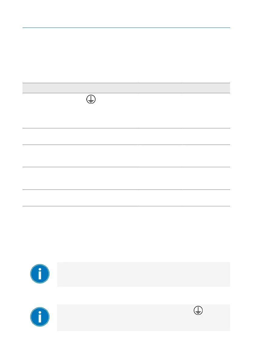 Table5: Recommendation for connection cable (standard connections)
