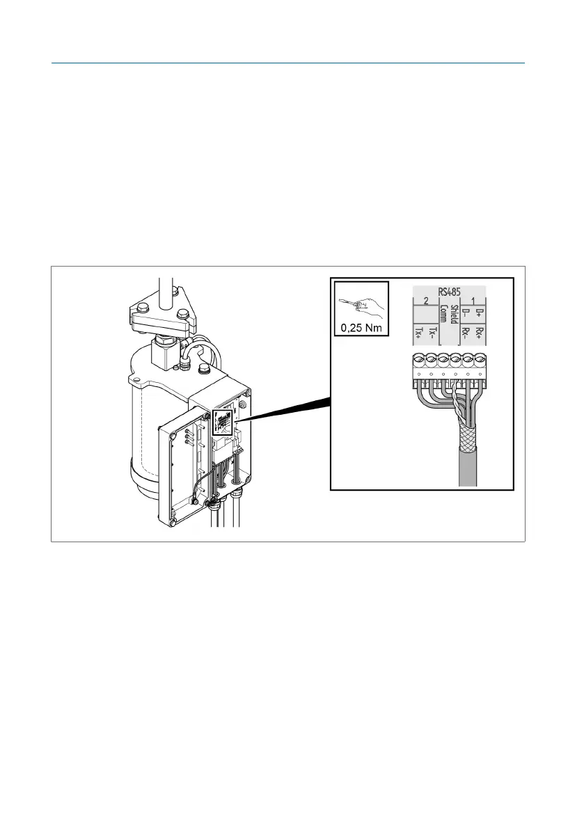 6. Twist the shielding, insert it into the "Shield" terminal and tighten.