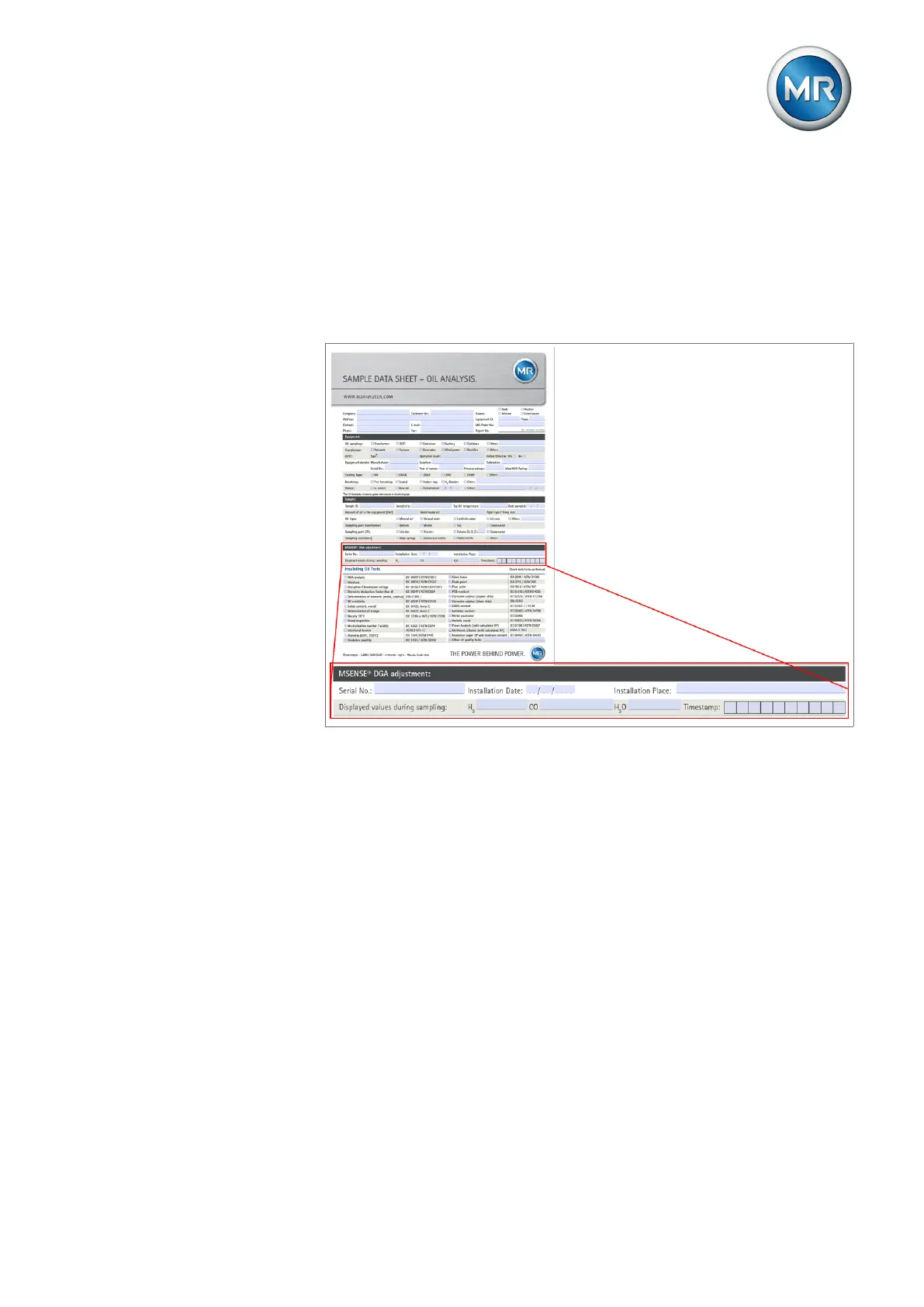 Figure46: Complete the sample information sheet (SAMPLE DATA SHEET – OIL ANALYSIS)