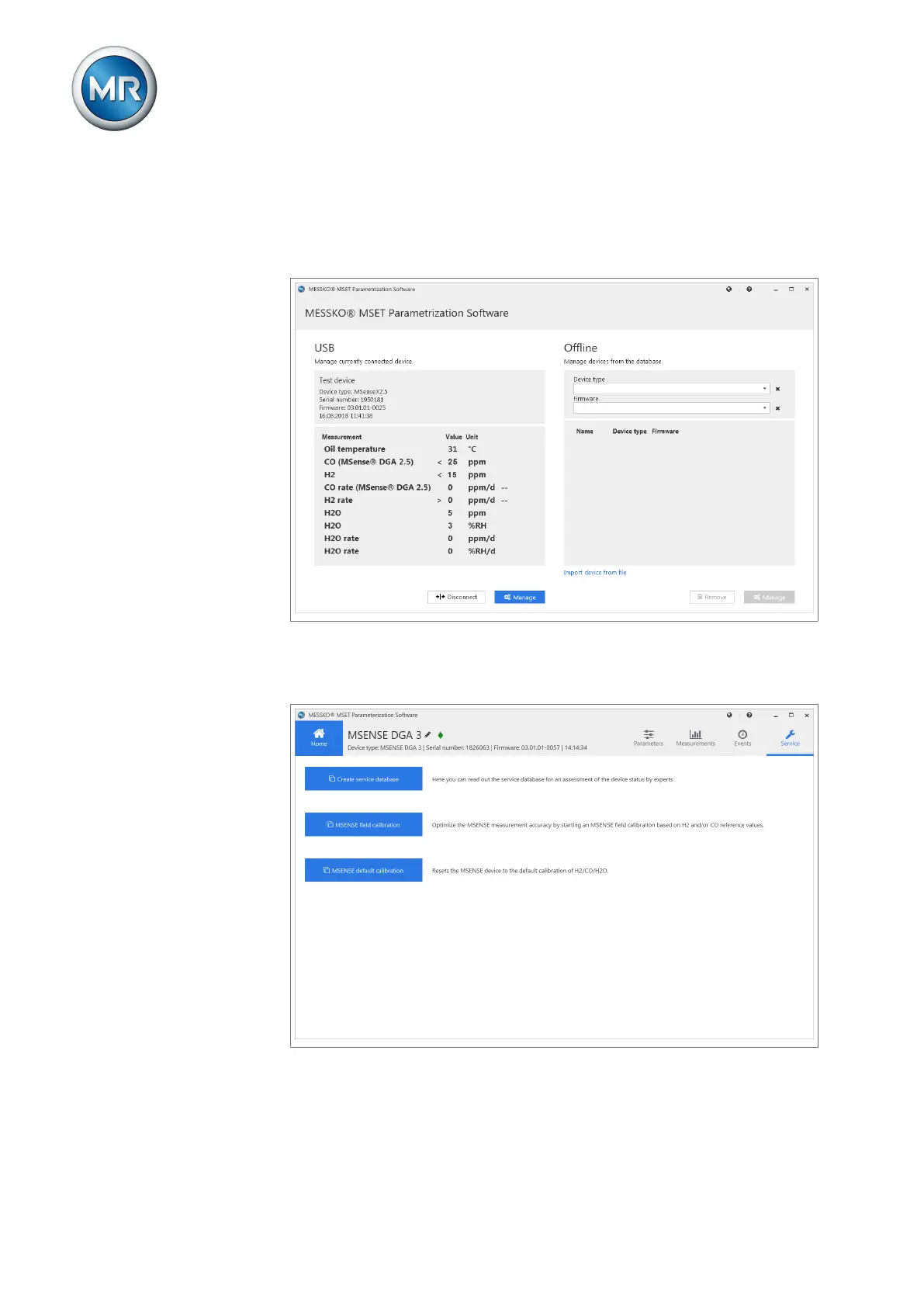 1. Connect the MSENSE®DGA 2/3 to the PC via the USB service adapter