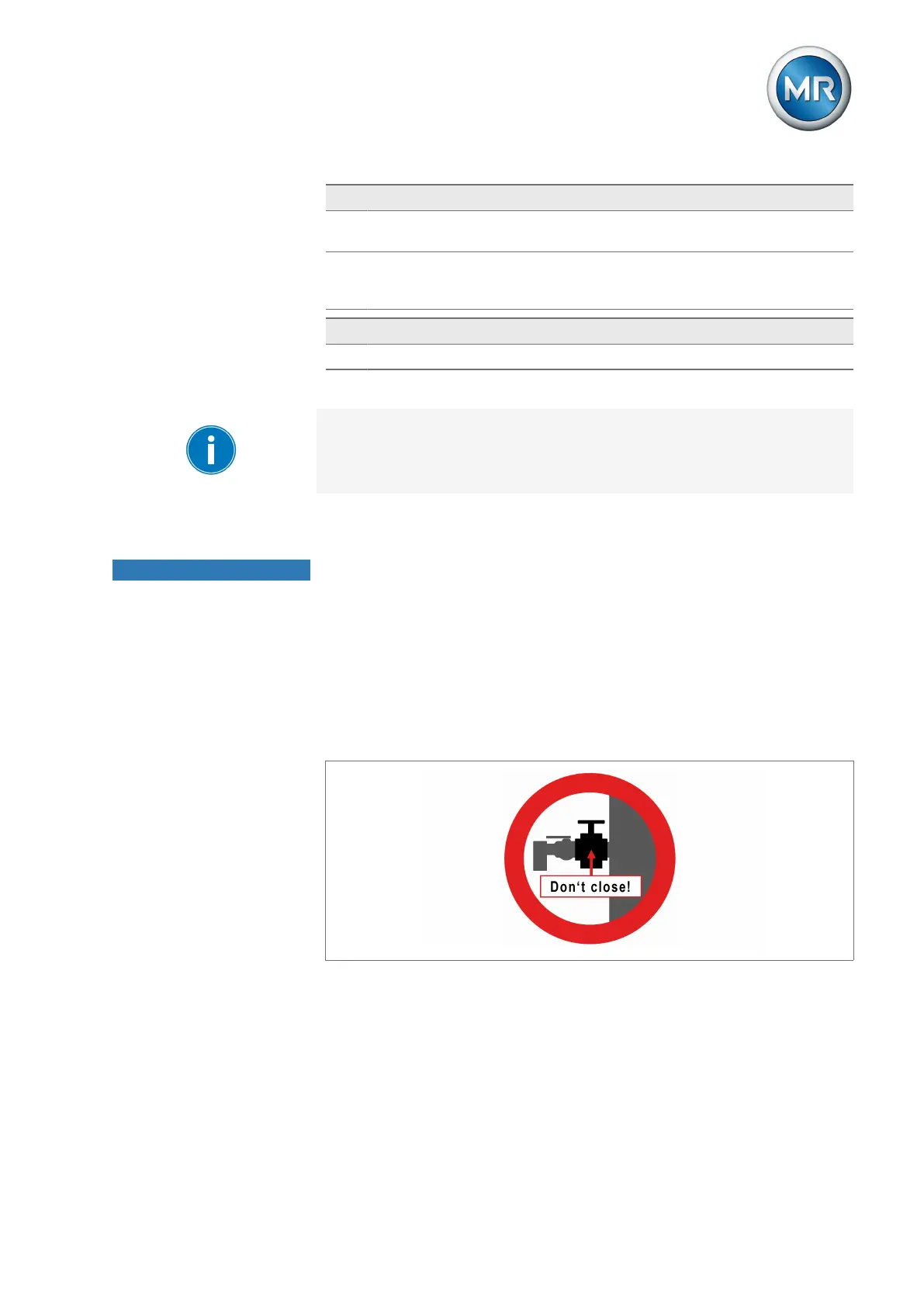 ► Attach the warning sign "Do not close!" included in the delivery to the