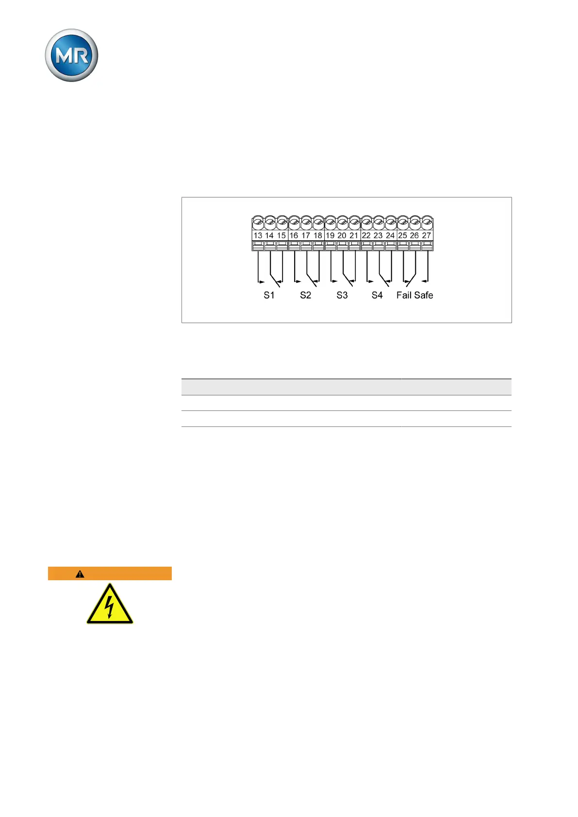 safety switching contact = fail-safe relay (FSR) for status signaling. The con-