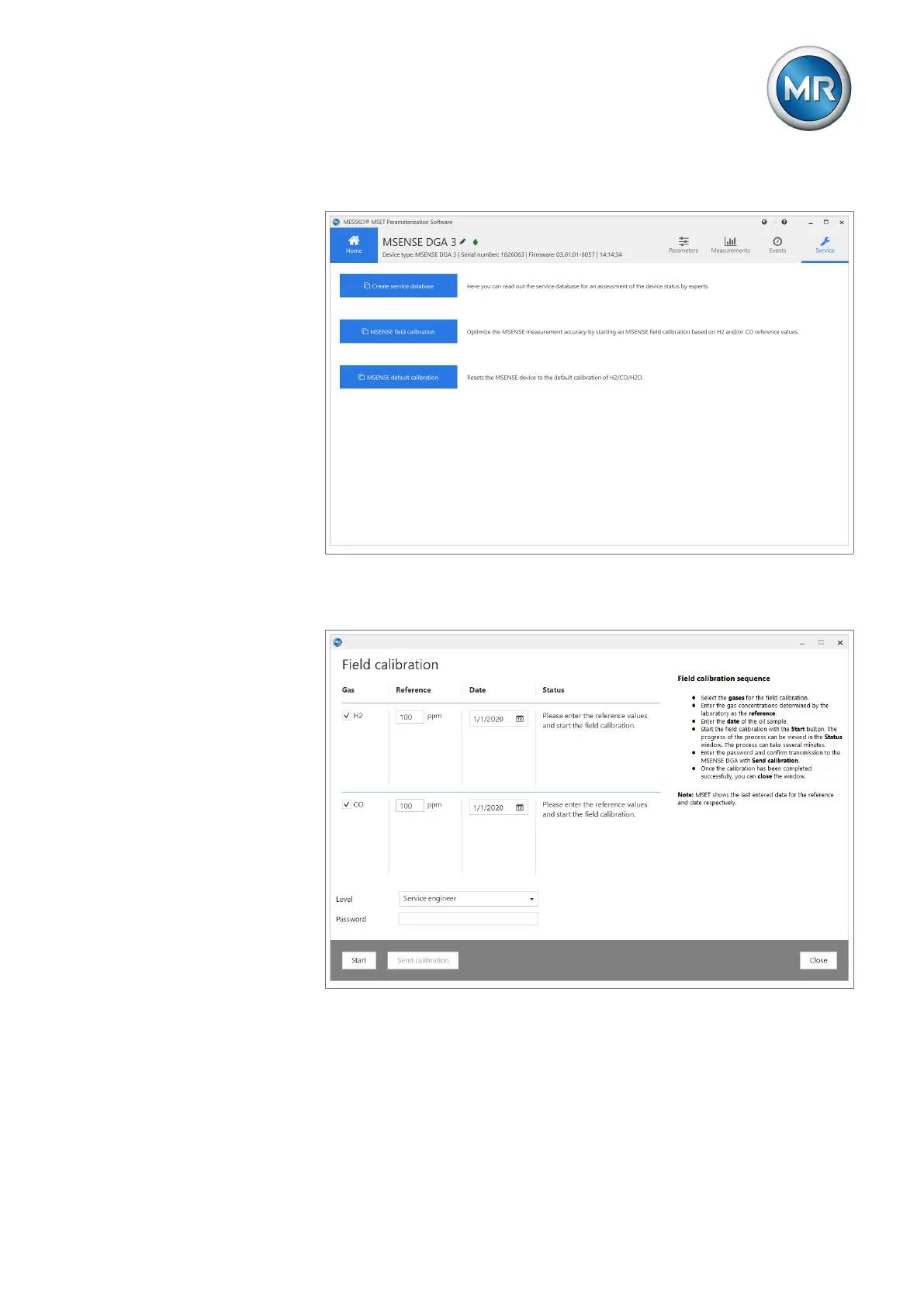 3. Click on Service and then on MSENSE field calibration.