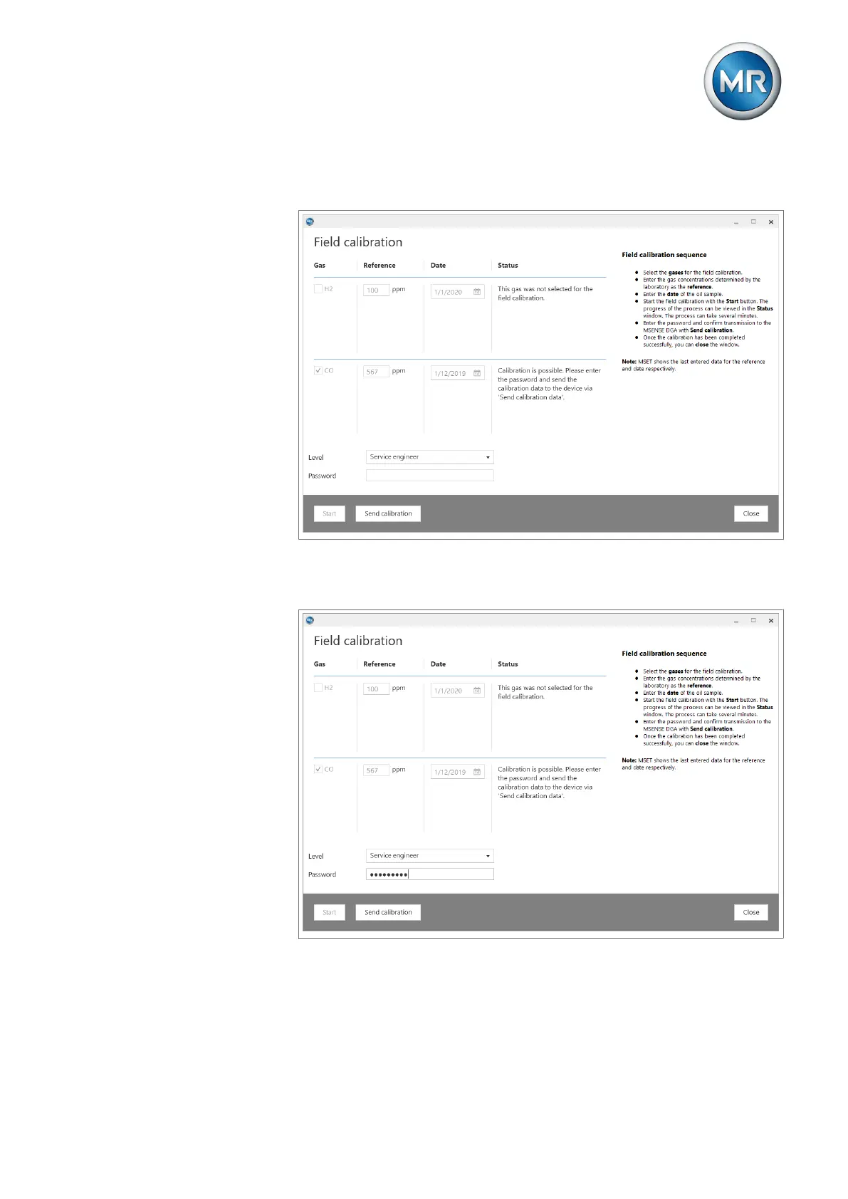 8. If the calibration is possible, enter the password and initiate the transmis-